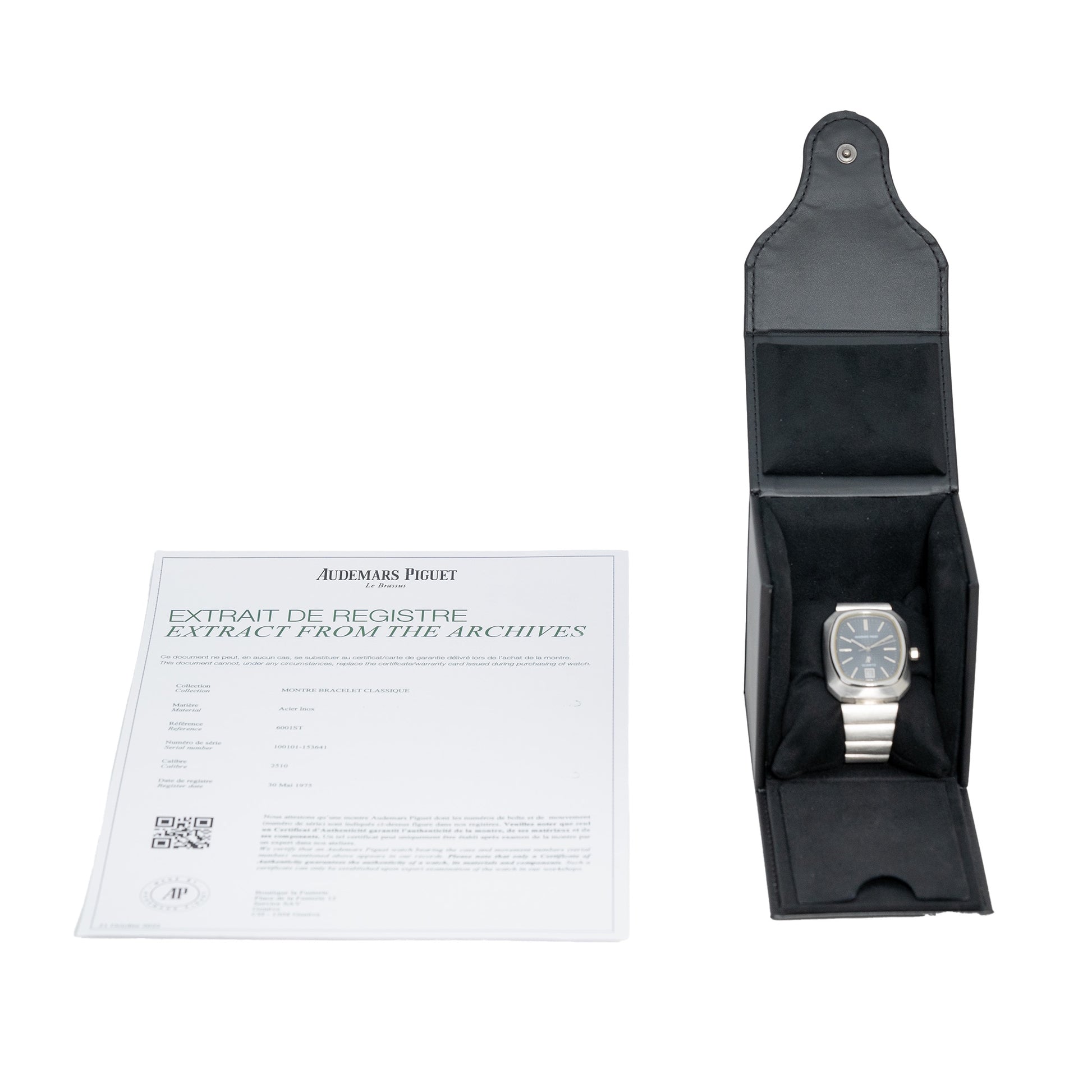 Accessories: Comes with Audemars Piguet service box and extract from the archives