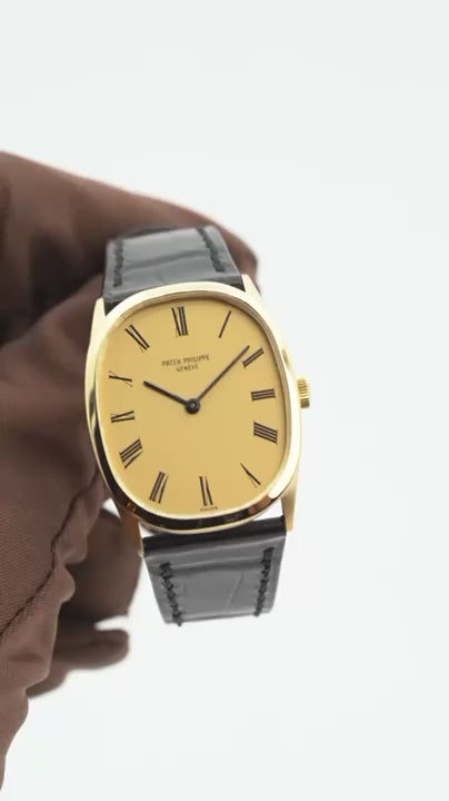 Beautiful Patek Philippe Ellipse in yellow gold with its original box and archives extract