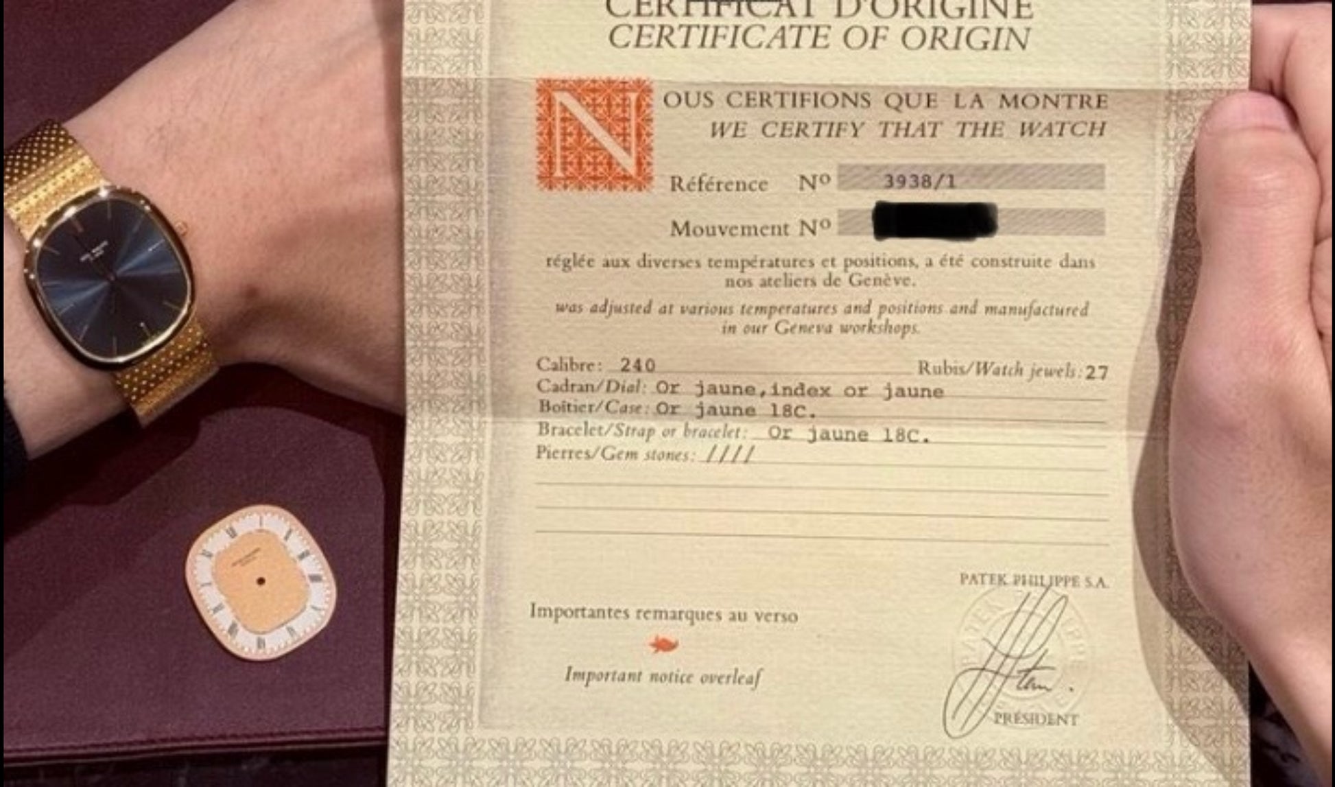 Accessories: Certificate of origin, documents, original champaign dial and original box