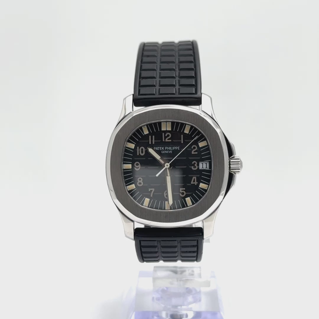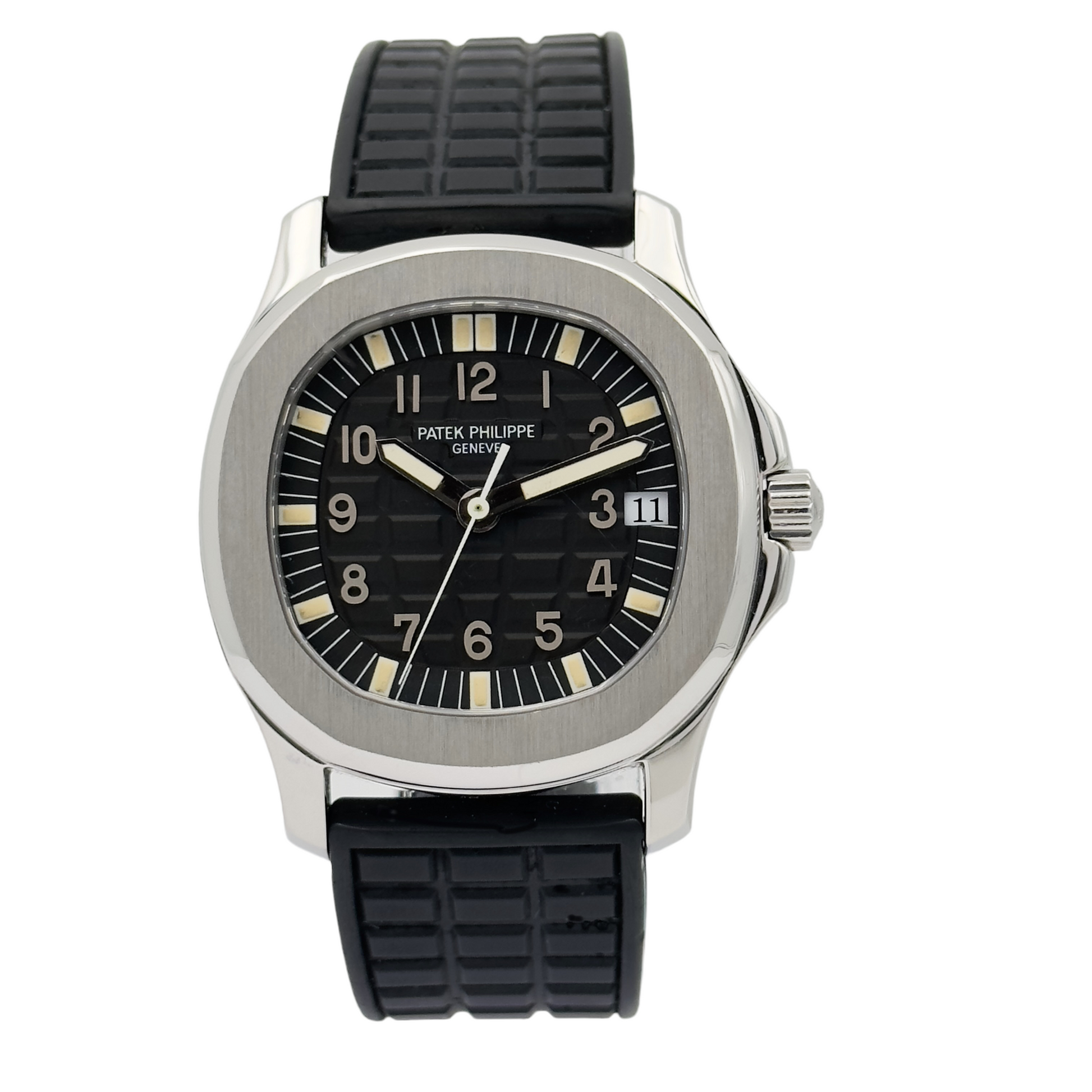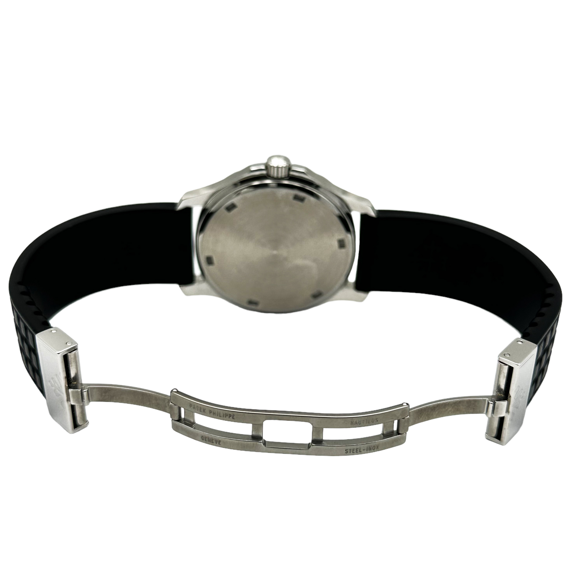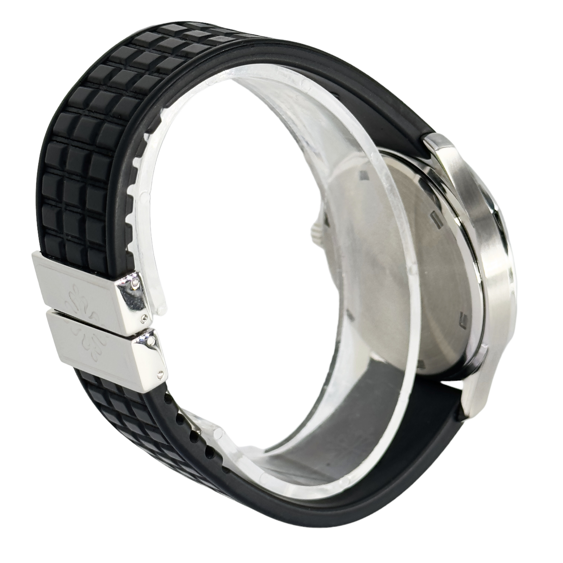 Notes: After the introduction of the firm’s first stainless steel luxury sports watch in the mid 1970’s, Patek Philippe introduced a new line of sports watches, the Aquanaut. Introduced in 1997, the ref. 5060 was the firm’s first model of its now highly desired line of luxury sports watches. Encased in a stainless steel case with much resemblance to the Nautilus, the Aquanaut featured a much simpler case construction and slightly smaller. Targeting a much younger audience, Patek Philippe removed the integrated bracelet and replaced it with a rubber strap. Furthermore, a screw down caseback was implemented to ensure a waterproof capability of up to 120 meters.